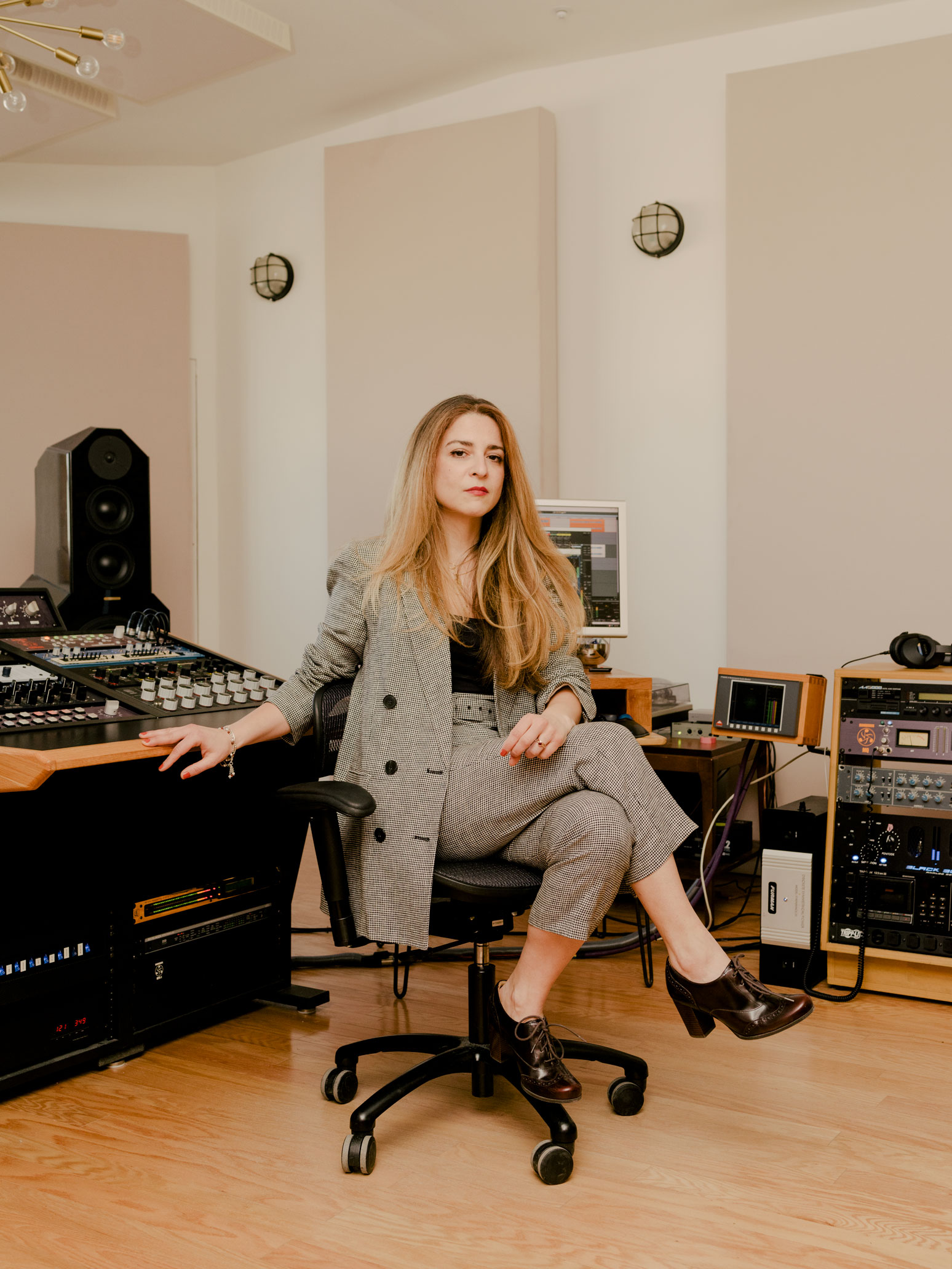 So being healthier, finally getting health insurance in my 30s. That helps me from not burning out and not being so bogged down by the changes in the city, which can be so stressful. Running a studio is very expensive. Rent is very expensive. I always want to be working in the analog world, using actual physical gear [she rests a hand on the console], as opposed to being an in-the-box kind of person.