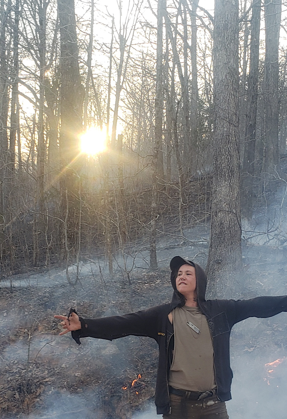 Can you talk a bit about what the actual property is like? Yeah, so it’s in the Ozark National Forest and you can’t really get there in a two-wheel drive. When I first came, it didn’t have anything there except a light. It has a light post, which is pretty weird, like some Narnia shit—like deep in the middle of the fucking woods, just woods. And I built a little cabin and timber framed an outdoor kitchen and I have a garden. I tried to have chickens but I am not a fucking farmer at all and so… it’s rough in a lot of ways. We just ran a system to pump water like, 700 feet up from a spring. But until then, I spent the last six years filling up gallons of water at a spring three miles away and hauling it back in the truck. I could be out there for weeks and never see anybody or occasionally hear a four-wheeler go by, or in the distance, hear hunters or something.