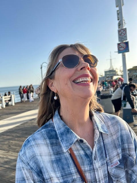 So now I keep a really clean desk. It is not a fancy one. I always wanted a beautiful wooden one, but I do not have a beautiful wooden one. I do look out at the ocean and the mountains and the sky as I sit there. I have one desk where I write by hand. Then I have my other desk where I type on my laptop. The two desks form a kind of L. I very rarely compose a first draft on a computer. I feel more connected to pen and paper.