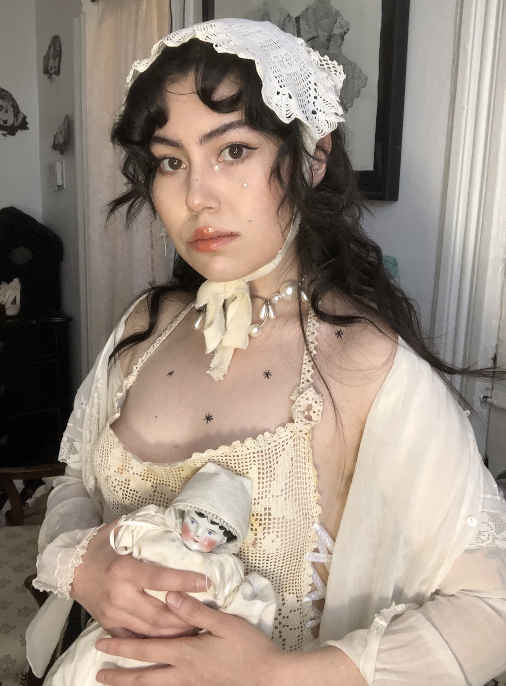 In my mind, the word lesbian feels like it could still be expected to follow cis/heteronormative beauty standards or whatever, but a hag and a dyke—that’s true sexiness to me. Because she’s a fucking hag, she is unafraid of looking however she feels most fully realized. I don’t know. She dresses and presents herself as whatever she wants, regardless of whatever is expected of her. She could wear a lace bonnet and she could wear a little fucking negligee, or she could wear fucking anything.