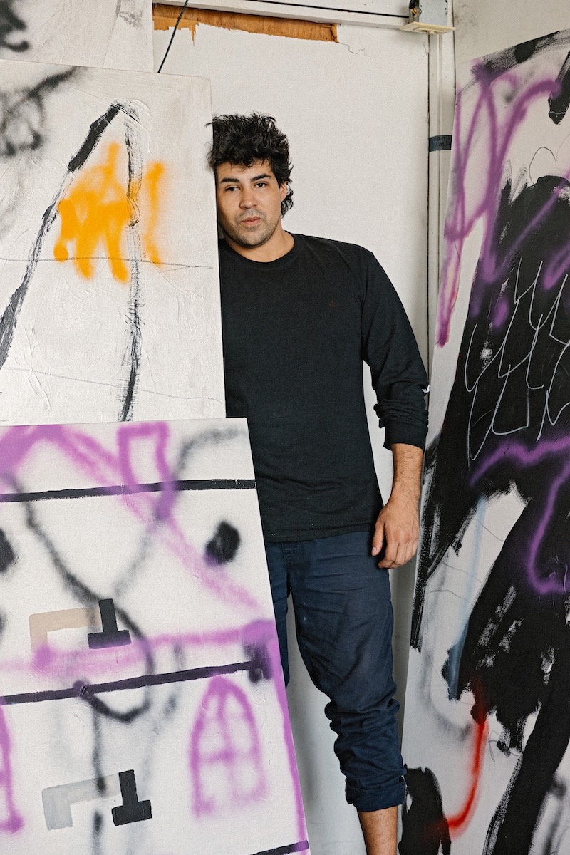 My friends critique each other pretty hard, and will say things like, “They’re abstracting [the surface] but it’s not like they’re [Willem] de Kooning or [Helen] Frankenthaler.” or “You’re scribblin’ but it ain’t like Twombly.” There was a painter friend of mine, a big brother type figure, named Lance De Los Reyes, who tagged RAMBO. He would come to the studio and say, “You see this energy happening here? [gesturing towards a painting] Do you think that’s really yours? You don’t own it, this is about the ancients passing through your body when you’re in the zone. It’s not really you.”