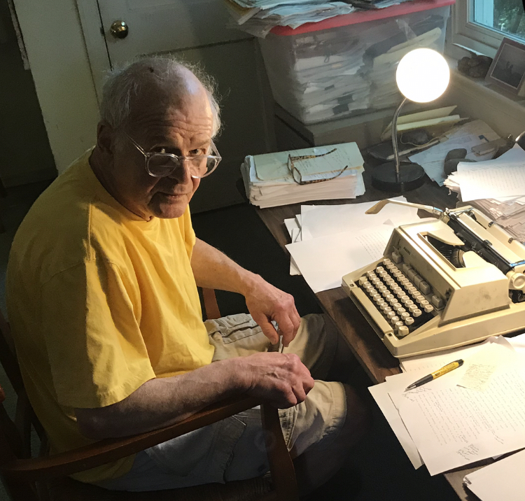 Now, because of the limited time I’m able to work on a typewriter, I only rewrite that page once, twice at the most, three times. But I read that page a lot more times than I used to read the page before. In other words, before, I retyped page one and then put it in again, read it and retyped it and retyped it 30 times. That’s not an exaggeration. Now I have the first draft of page one and I start the final draft. This is only in the last couple of years. And I try to make that final draft of page one done in a day. Usually it takes two pages, at the most three. So the mechanics of my writing have changed. I mean, now I couldn’t write 30 pages in three days because of my physical limitations. But I don’t think my writing has suffered from it. I’ve been writing for so long, for 60 years, and just about every day in the last 60 years I’ve worked on my typewriters.